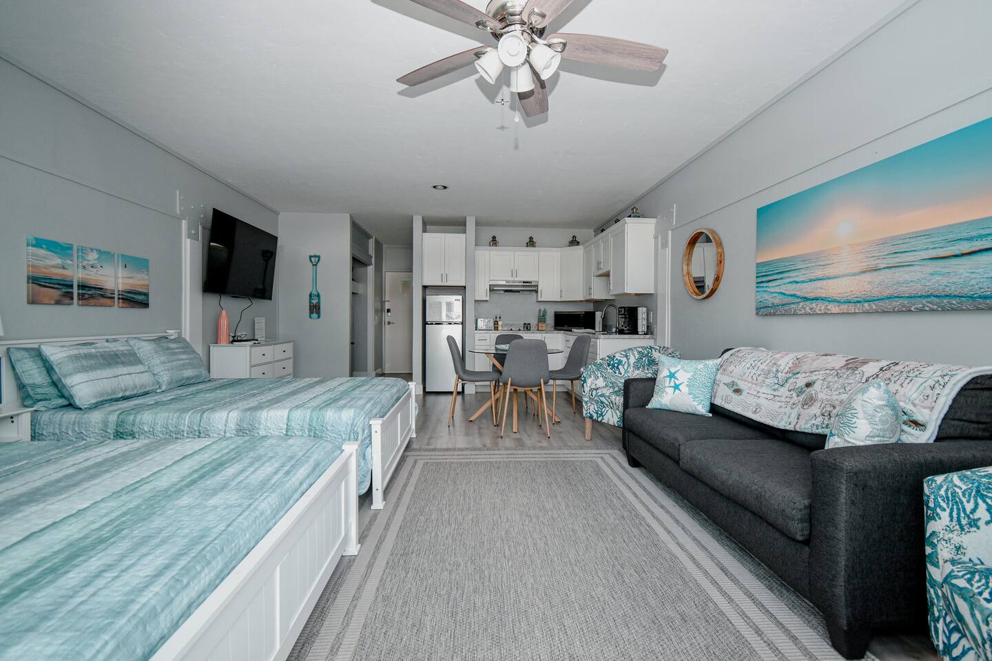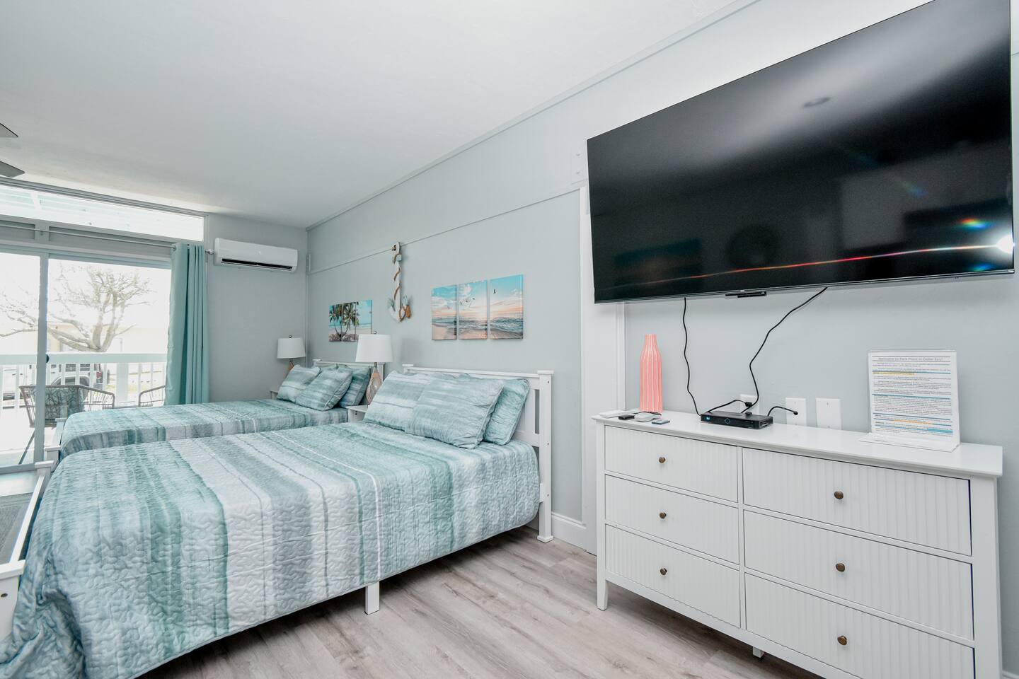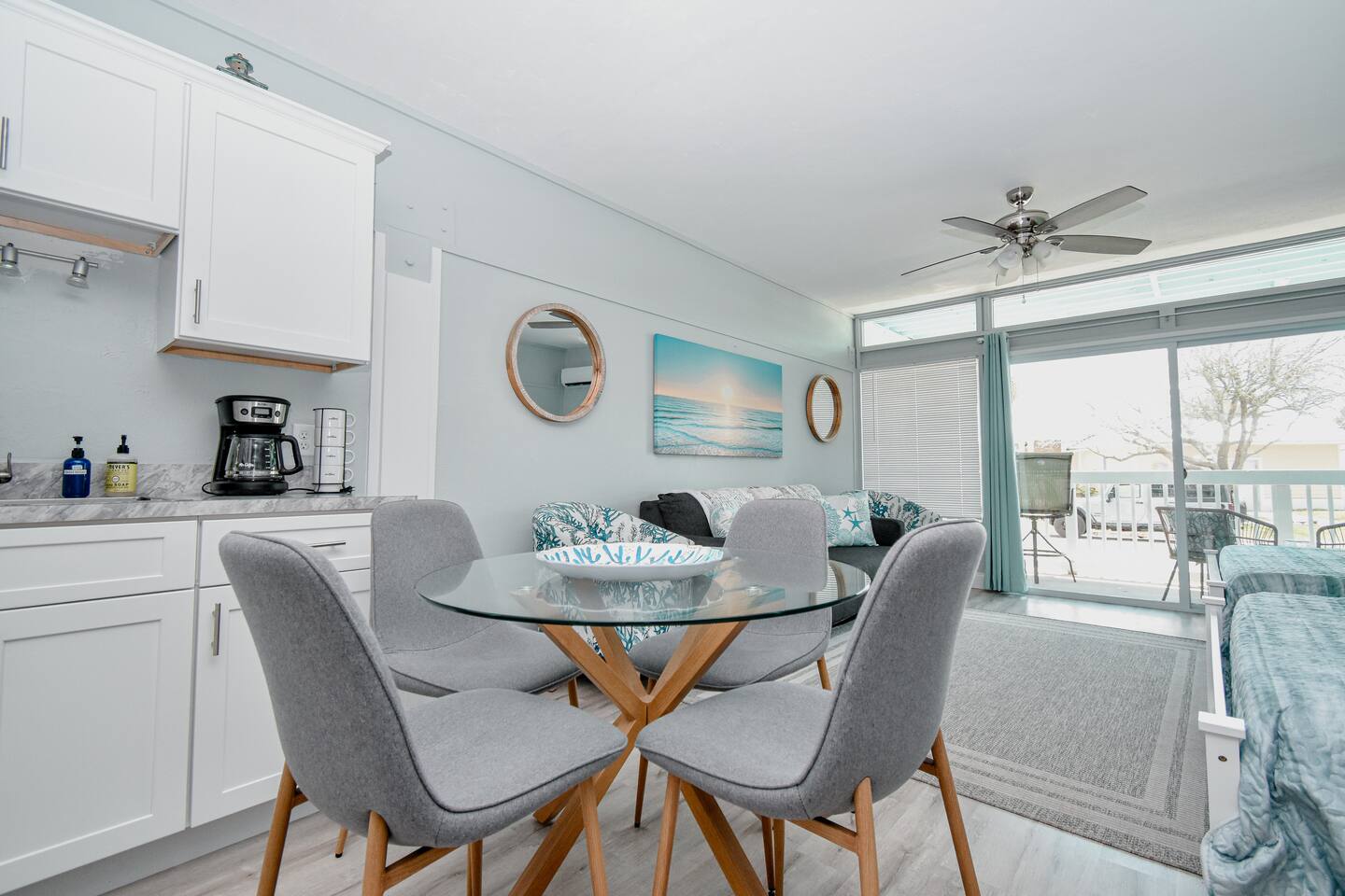 Welcome to our little slice of Old Florida heaven! This fully remodeled 1st floor condo features a fully stocked kitchen with a refrigerator, stove top and microwave. The living room area includes 2 queen beds and a pull out sleeper sofa. Enjoy the 65 inch TV or relax on the porch with views of the city park, beach and the Gulf of America. Visit the gift shops, restaurants and be sure to bring your fishing rod to enjoy all our island oasis has to offer!