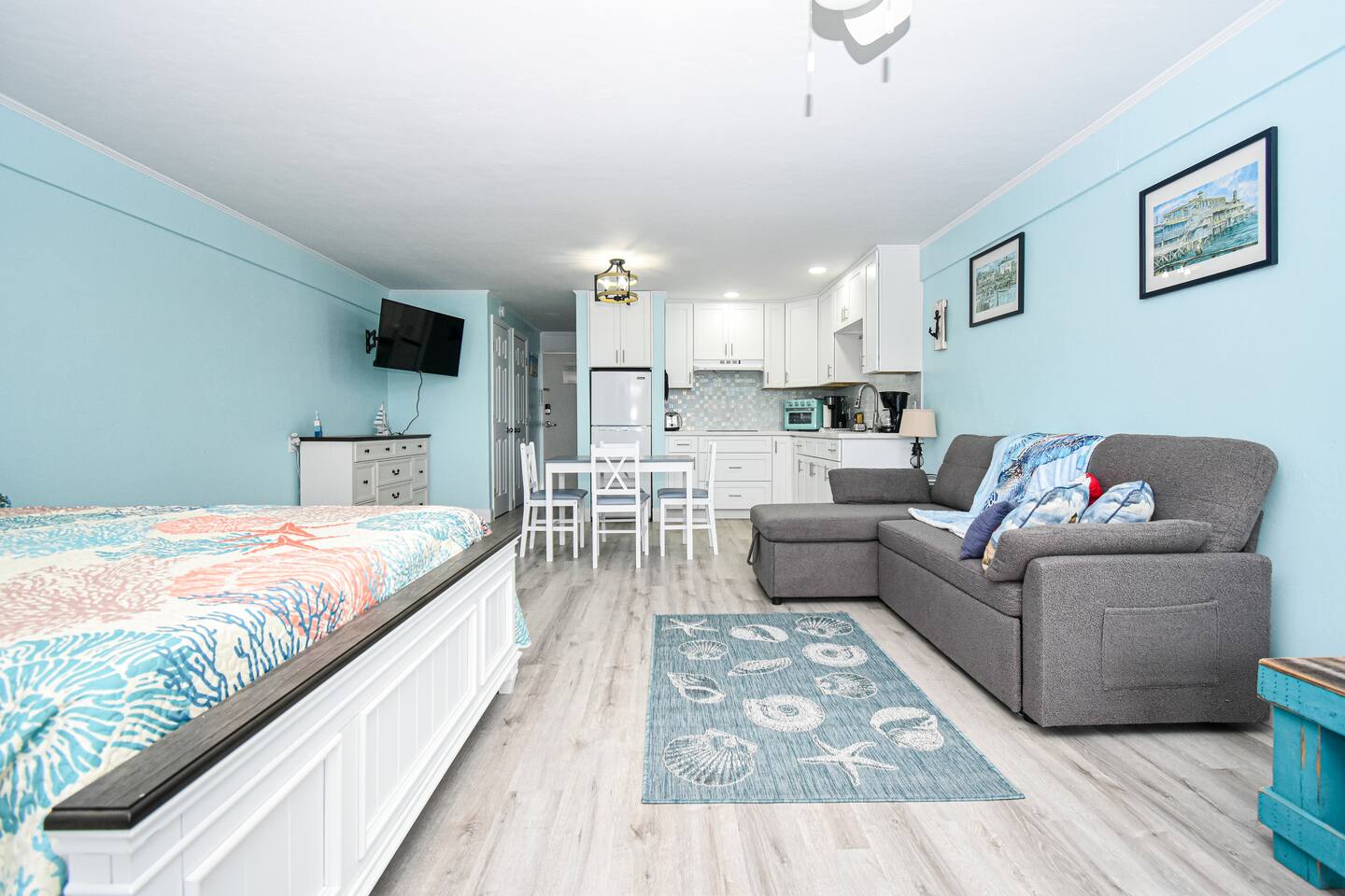Mermaid-Inspired Ocean View Condo | Walk to Dock Street Wake up to ocean views and coastal breezes in this beautifully decorated mermaid-themed condo located in the heart of Cedar Key. Step onto the balcony to enjoy stunning sunsets with a glass of wine or morning coffee—this is island living at its best. Perfect for couples, families, and dog lovers, this condo blends playful coastal charm with comfort and convenience, just steps from restaurants, shops, and the waterfront. 🏖 The Space Bright, newly remodeled condo with mermaid & coastal décor Balcony overlooking the water and City Park Comfortable bed Sleeping sofa with memory foam topper in the storage Open living space with plenty of natural light Why Guests Love This Condo ✔ Ocean & sunset views ✔ balcony with the view of the Golf ✔ Walkable location ✔ Stylish mermaid décor ✔ Clean, comfortable & relaxing ✔ Pet-friendly option 📍 Unbeatable Location Walk to Dock Street Walk to restaurants, coffee shops & local bars Walk to shops, marina & waterfront attractions Central Cedar Key location—no car needed Guests love being able to park once and explore on foot. 🐶 Dog-Friendly Stay We welcome your furry family members 🐾 A pet fee applies—please review house rules for details. 🍽 Fully Equipped Kitchen Cook with ease using a full kitchen that includes: Full-size refrigerator Dishwasher Pots, pans, dishes & utensils Wine glasses and cooking essentials Everything you need for meals at home—or enjoy Cedar Key’s walkable dining scene.