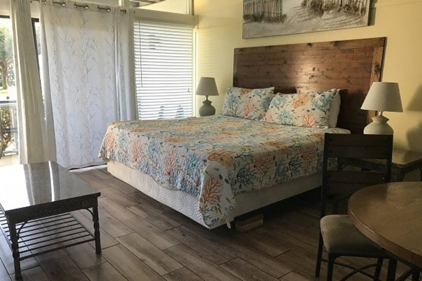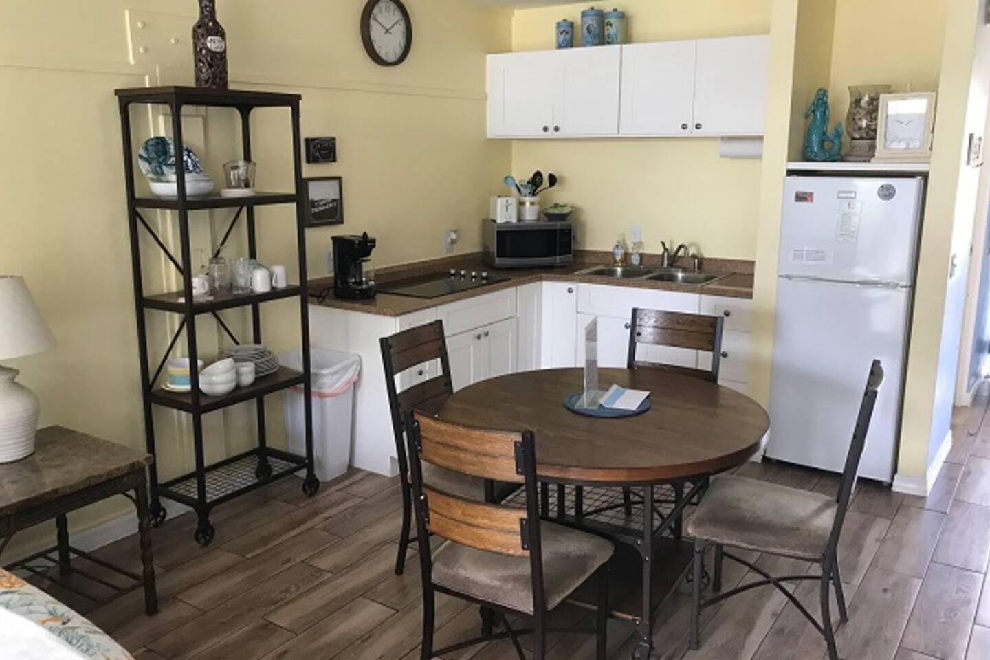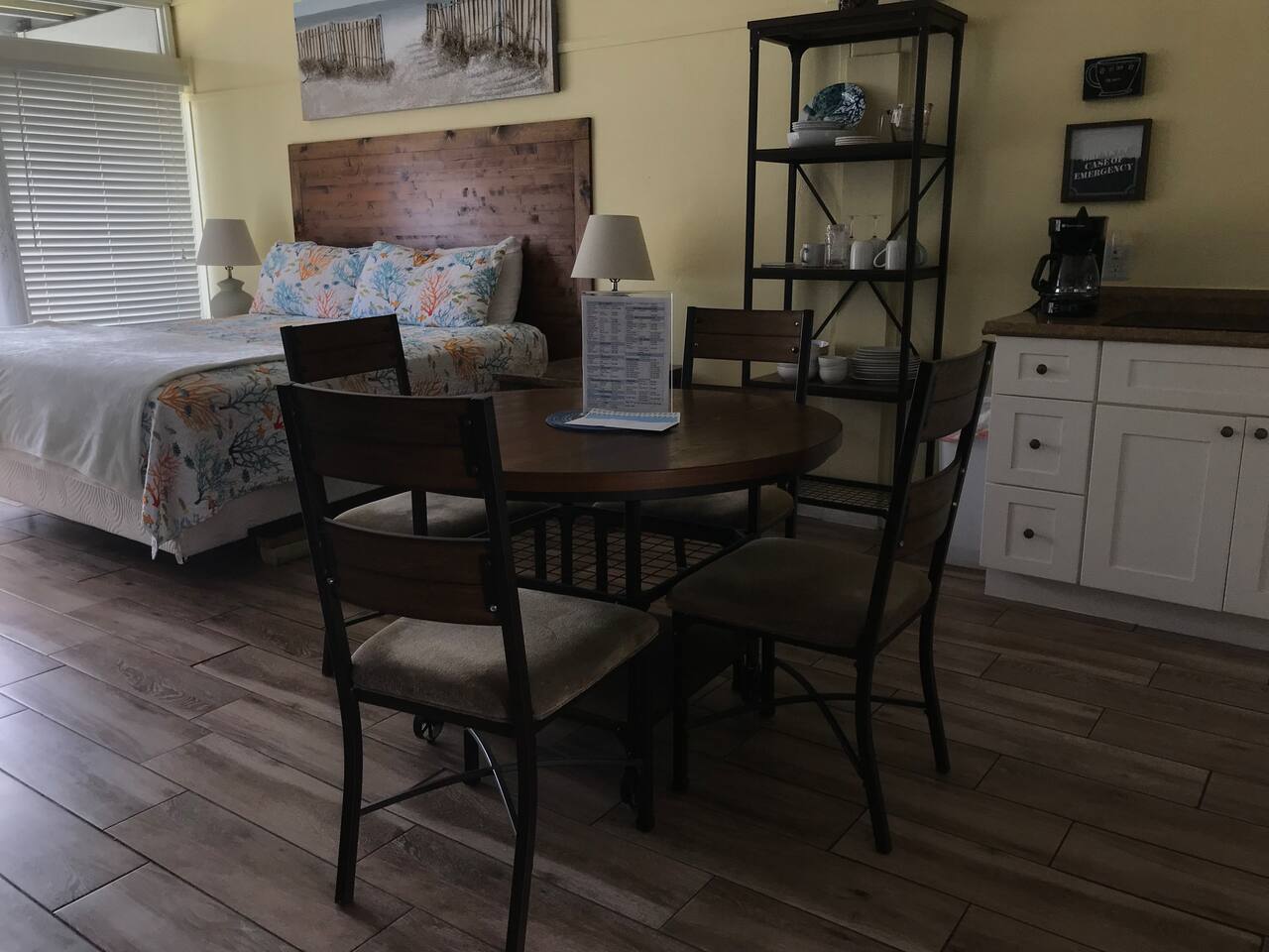 This newly renovated unit has a beautiful view with comfortable seating, perfectly cozy for a home away from home. The kitchen has a 4-burner stove, microwave, toaster, coffee maker and a full refrigerator. See you soon!
