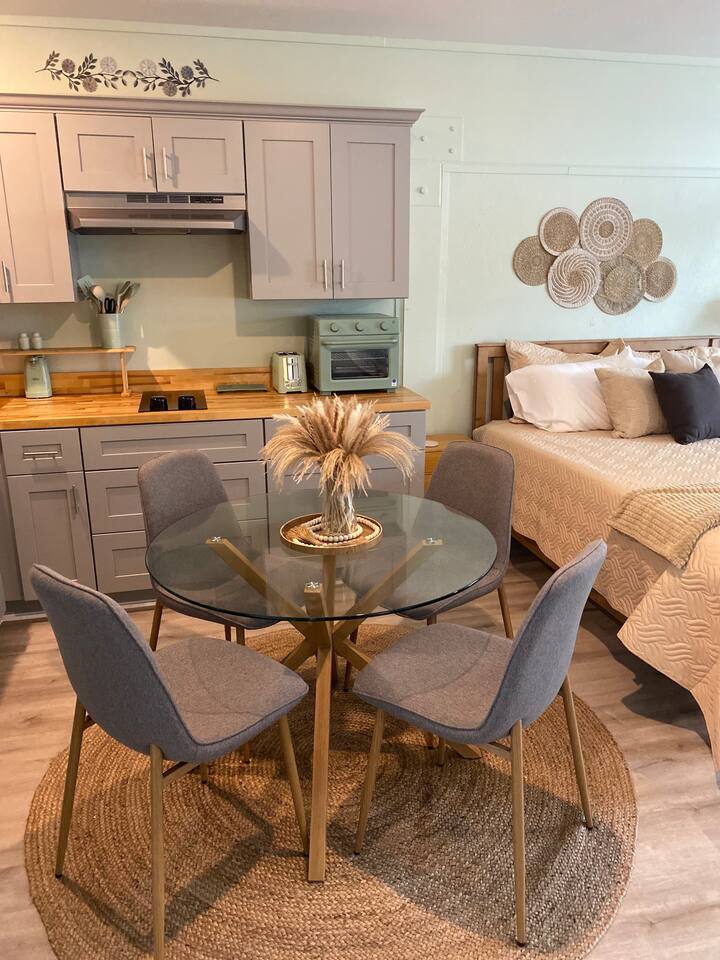 Nice tall queen beds, futon couch for your additional guests. The kitchen comes accommodated with a hot plate, Toaster oven, coffee maker, microwave, toaster and refrigerator. See you soon!